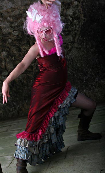 Labels were an important feature of the look of our products, as was the presentation and packaging. These were “anti-label” labels, as they displayed the wearer as someone who has chosen to purchase a product made in the UK by workers, who own and manage their own company. A product made from largely reclaimed materials, produced using largely renewable power and handmade. The ladies ran market stalls & events to promote not only their clothing adaptation skills but also their sense of fun during an event, quite often bringing the party environment as well as themed set dressing, props and entertainment. Bedlam Boudoir was the precursor to Collective Nonsense.