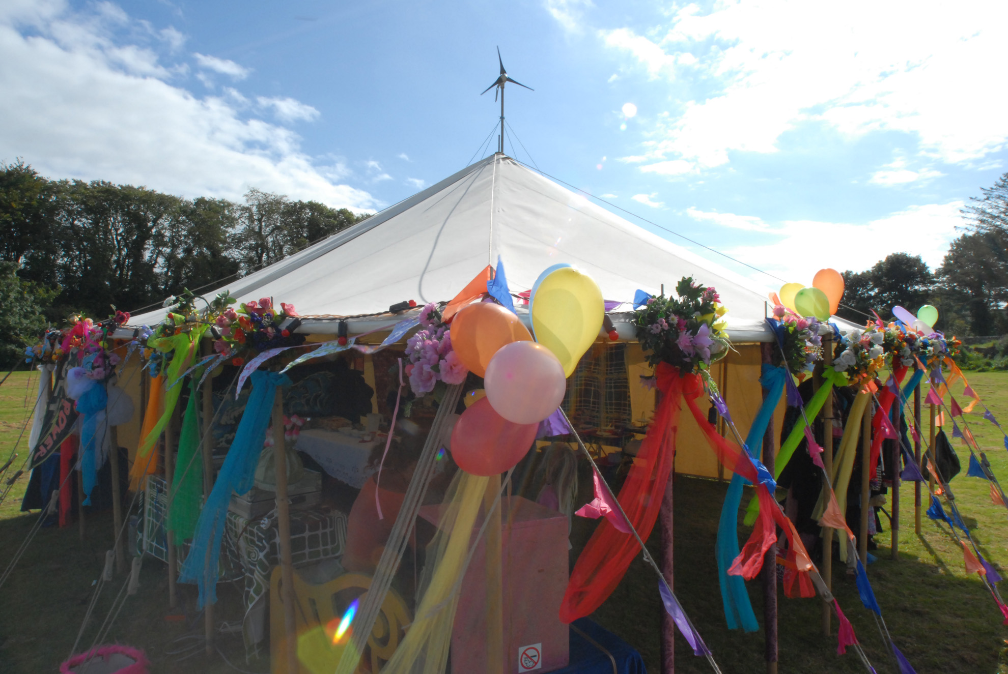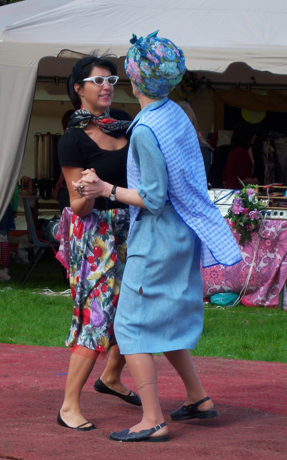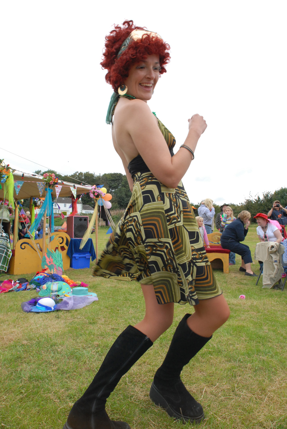 The Collective Nonsense team presented a fun reinterpretation of the 1950’s Tea Dance which toured local parks and playing fields. A finely decorated marquee sat by an outdoor dance area surrounded by tables and chairs complete with table cloths and waitress service. Traditional high teas were served (with classic cucumber sandwiches) while dance classes taught disco and lindy hop. Visitors made use of the huge boxes of dressing up clothes and wigs to create their own T-Dance characters while DJ Grubb entertained with fine afternoon tunes. The T-Dance was held in the Auchencairn, Creetown and Moniaive villages in Dumfries and Galloway, Scotland.